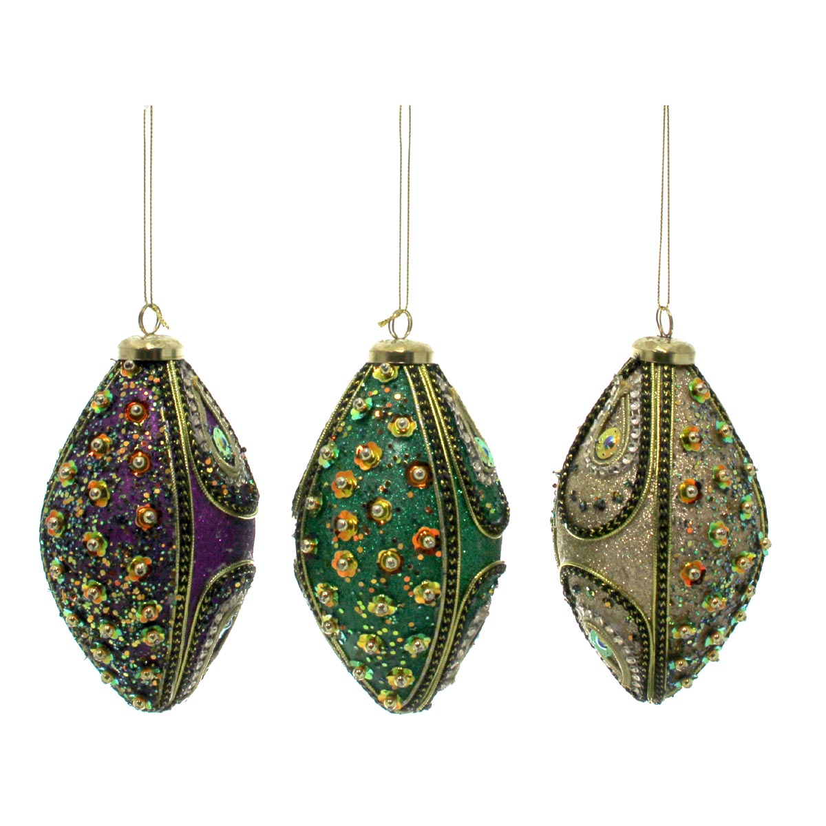 Mardi Gras Finial Purple, Green, & Gold Ornaments 6"